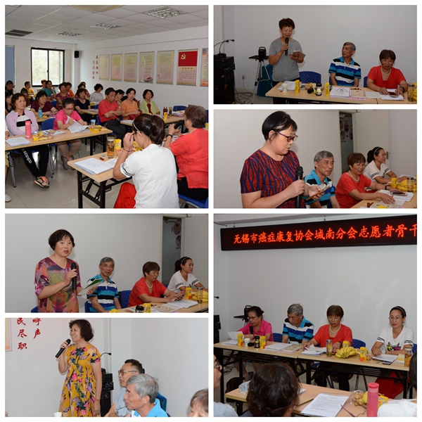 城南分部黄翠芬主任,首先总结了上半年分部工作中取得的成绩,制定了下半年的工作规划。2018年上半年城南分部心连心一路同行,不忘初心做康复,牢记宗旨作奉献,顺利完成总部组织架构的各项活动,认真积极地完成了总部的创投活动,开展了以服务会员康复为中心的一系列活动,使分部的工作有声有色,同时也对照兄弟分部,学习他们的长处,找自己的差距。会上,黄翠芬主任宣读了调整后的正、副主任,康复中心片区工作站及各康复小组正、副组长的任命名单,城南分部此次中层志愿者调整幅度在本届协会中堪称最大,分部3位副主任、康复中心片区站长都是新提拔上来的,新鲜血液将会给分部以后的工作带来新观念、新思路、新气象,引领分部有新的飞跃。此外黄翠芬主任向志愿者骨干们传达并解读了宁波协会的先进康复理念及独特的管理经验,无锡市癌症康复协会和宁波市癌症康复协会缔结了姐妹友好协会,在今后的工作中我们将取长补短,从中吸取好的思路和理念。城南分部坚决贯彻执行协会四级管理的要求,康复中心站己开始正常运作,尽快努力完成中心站顺利和街道对接并挂牌,今天培训会议结束后会尽快落实移境培训讨论。下半年将跟协会步调一致,共同努力完成协会下达的任务,没有最好,只有更好,力争再上新台阶。