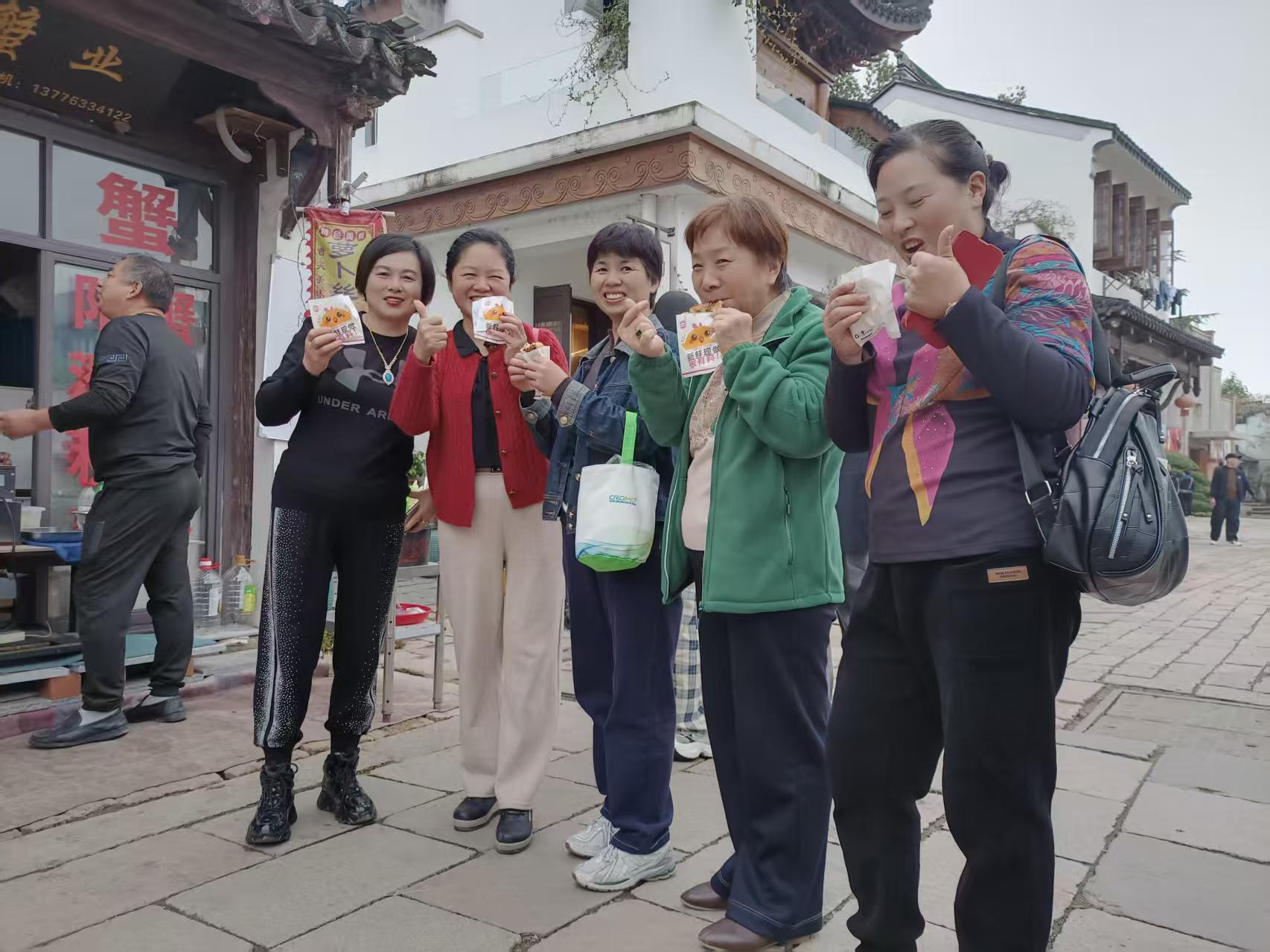旅程的最后一站,我们来到了有着“北上取景点”之称的巴城老街。青石板路蜿蜒曲折,两旁是古色古香的店铺,浓郁的烟火气息扑面而来。会员们穿梭在老街巷陌,品尝着当地特色小吃,有人买了特色小吃分享给大家品尝,彼此照顾、相互陪伴的画面格外暖心。“以前总觉得生病后,生活少了很多乐趣,没想到这样的一日游,既能看风景、尝美食,还能和大家一起说说笑笑,心里特别敞亮!”一位会员笑着说道,眼中满是满足。
