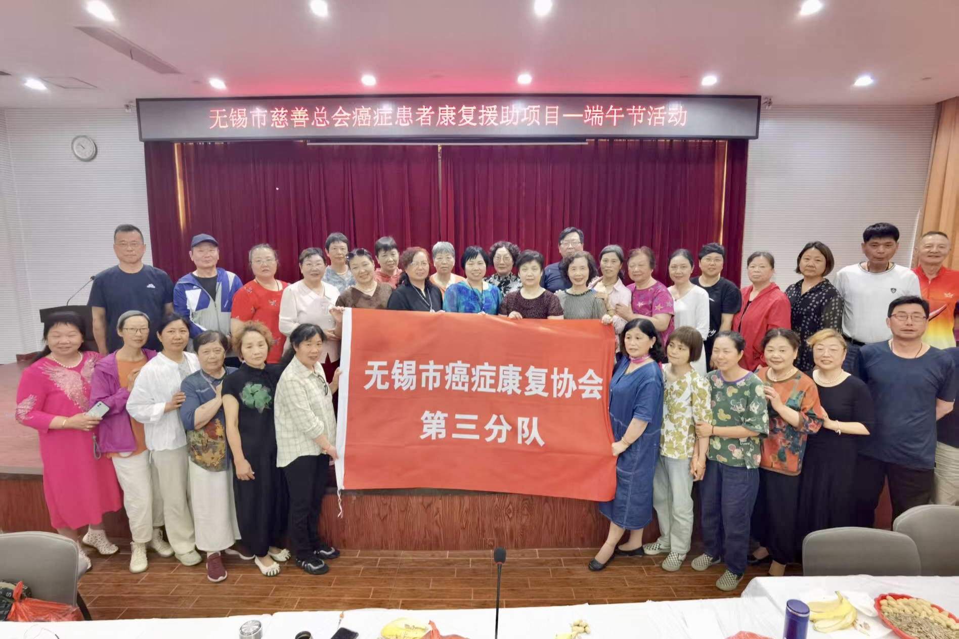 端午临近,粽香四溢。5月22日,无锡市第八人民医院礼堂内暖意融融,癌症康复协会三分队精心筹备的端午茶话会在此温馨启幕。新老会员们怀着期待陆续到场,志愿者们提前将活动现场布置得温馨而热烈:围成环形的桌椅,恰似张开的双臂,将所有人紧紧环绕,营造出温暖亲切的氛围。