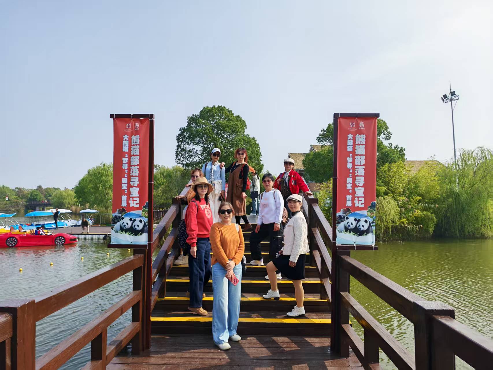 乘船游览时,清风拂过湖面,泛起粼粼波光,会员们纷纷掏出手机记录美景,身心都得到了放松。