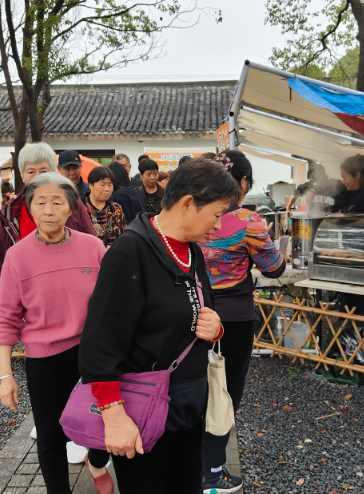 旅程的最后一站,我们来到了有着“北上取景点”之称的巴城老街。青石板路蜿蜒曲折,两旁是古色古香的店铺,浓郁的烟火气息扑面而来。会员们穿梭在老街巷陌,品尝着当地特色小吃,有人买了特色小吃分享给大家品尝,彼此照顾、相互陪伴的画面格外暖心。“以前总觉得生病后,生活少了很多乐趣,没想到这样的一日游,既能看风景、尝美食,还能和大家一起说说笑笑,心里特别敞亮!”一位会员笑着说道,眼中满是满足。