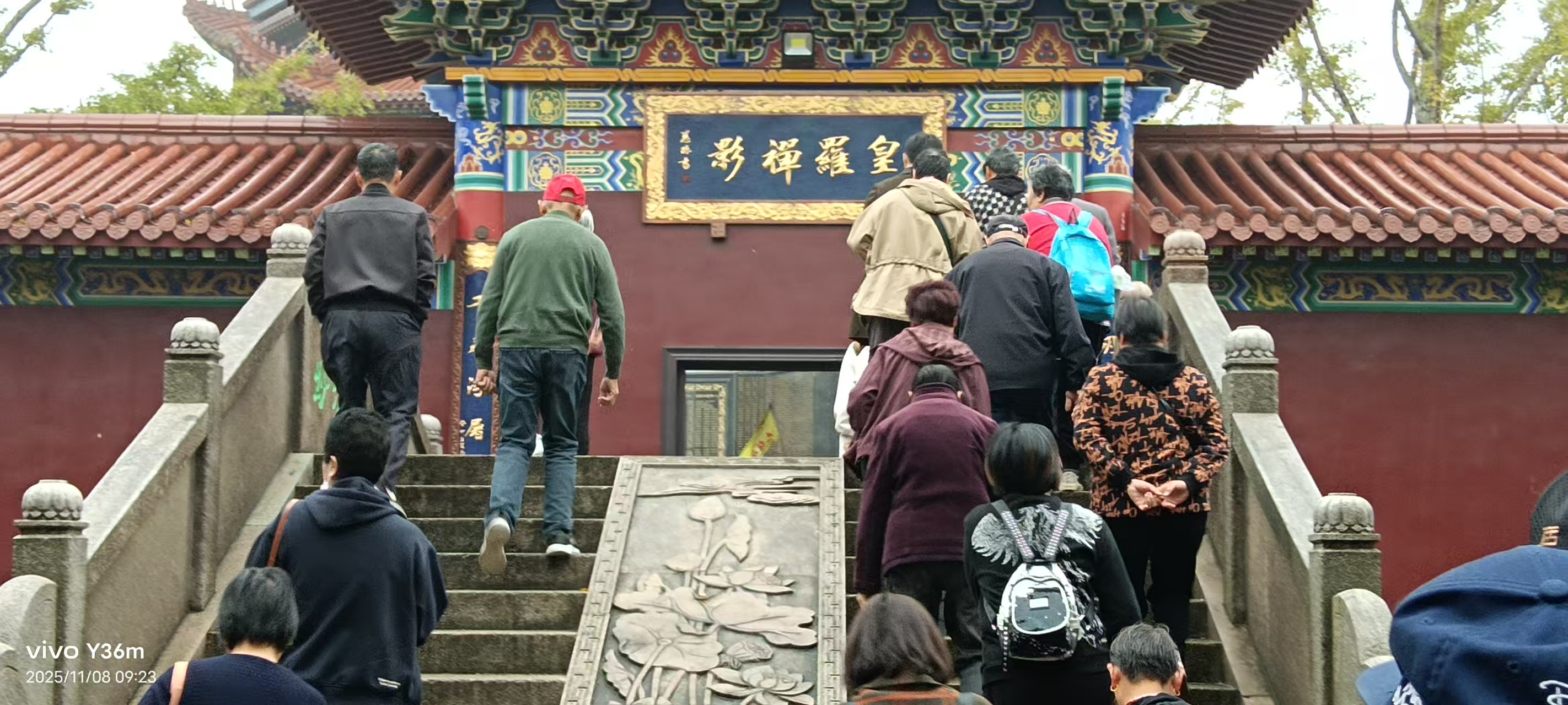 旅程的第一站,我们抵达了静谧肃穆的皇罗禅寺。踏入寺院,青瓦红墙间萦绕着淡淡的香火气息,古朴的建筑与参天古木相映,让人瞬间卸下了生活的疲惫与病痛的阴霾。会员们怀着虔诚之心缓步穿行,有人双手合十默默祈愿,有人轻触殿内梁柱感受宁静,脸上满是平和与期盼。